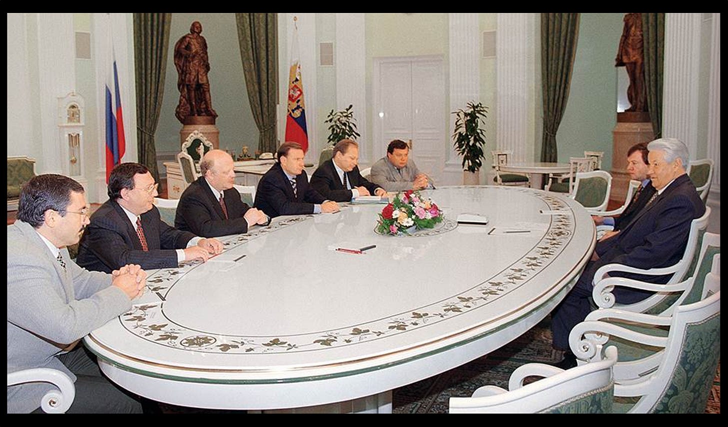 Behind the façade of democracy and her elected President Boris Yeltsin, this group dominated Russia. Boris Berezovsky, whom in 1997 US News & World Report called “the most influential new capitalist tycoon in Russia,” even bragged about his ability to appoint officials in the Yeltsin administration: “We hired Chubais. We invested huge sums of money. We guaranteed Yeltsin’s [1996] election. Now we have the right to occupy government posts and use the fruits of our victory.”